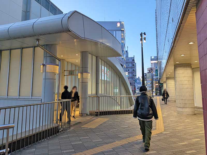 駅を出たら、前方に屋根のある連絡通路がありますので、そちらに入ってください。