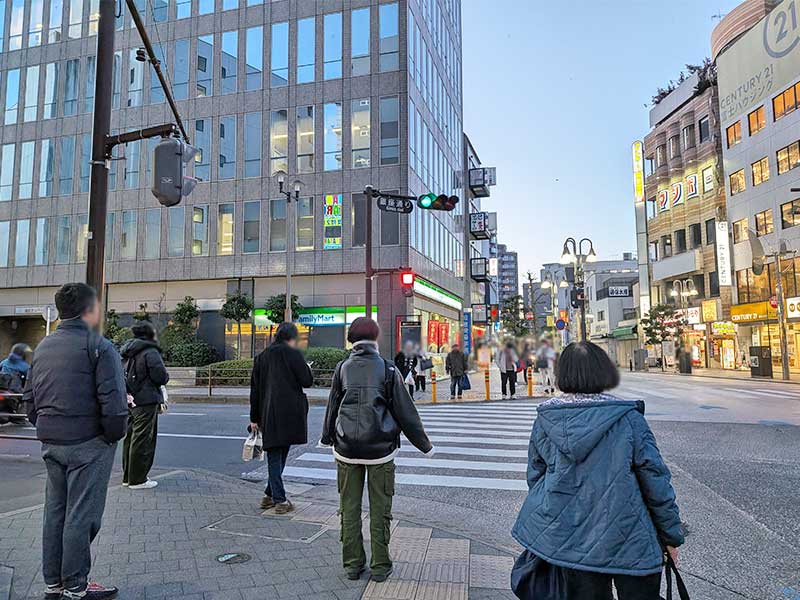 北口を出て少し進むと、大きな十字路がありますので、左に曲がってください。